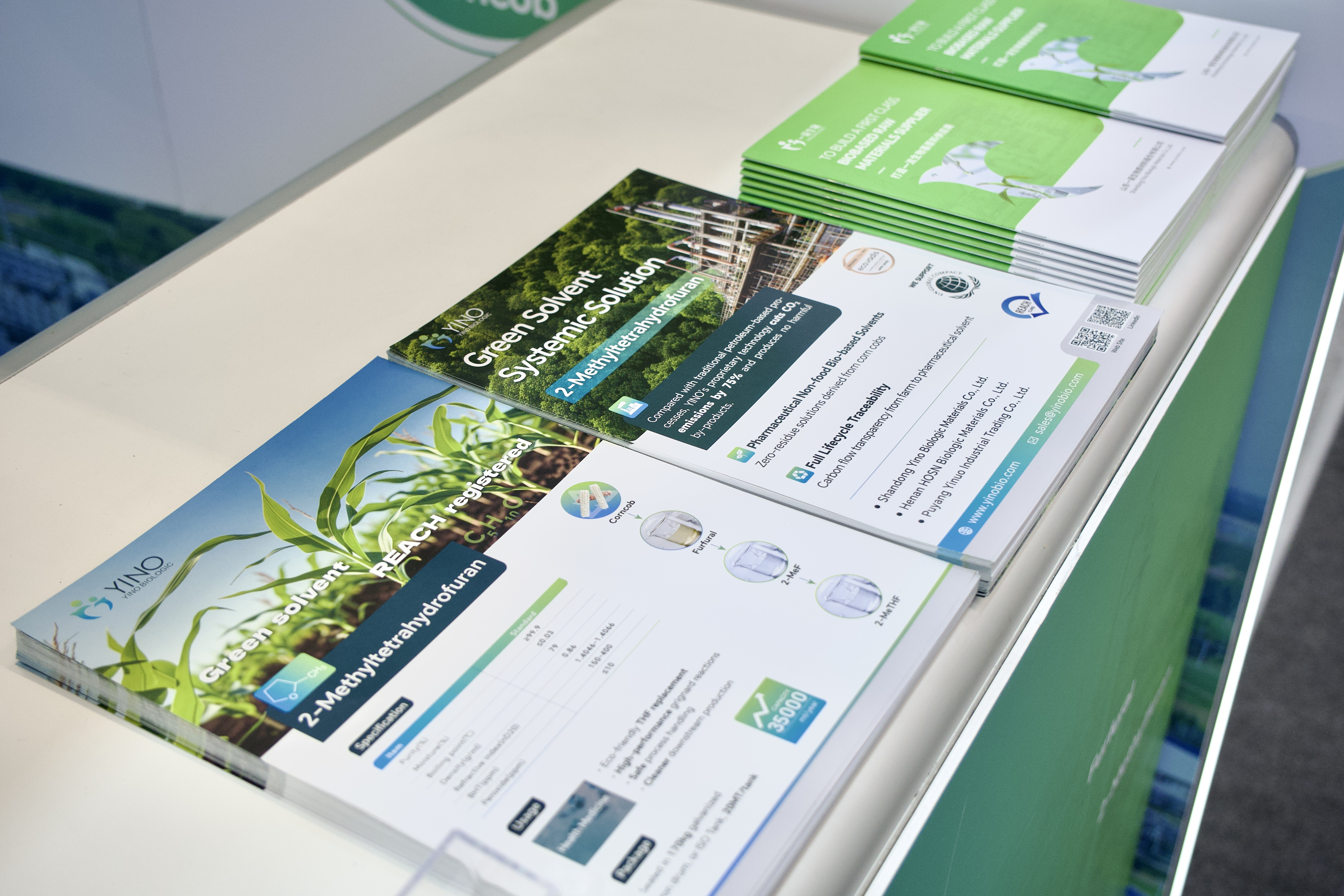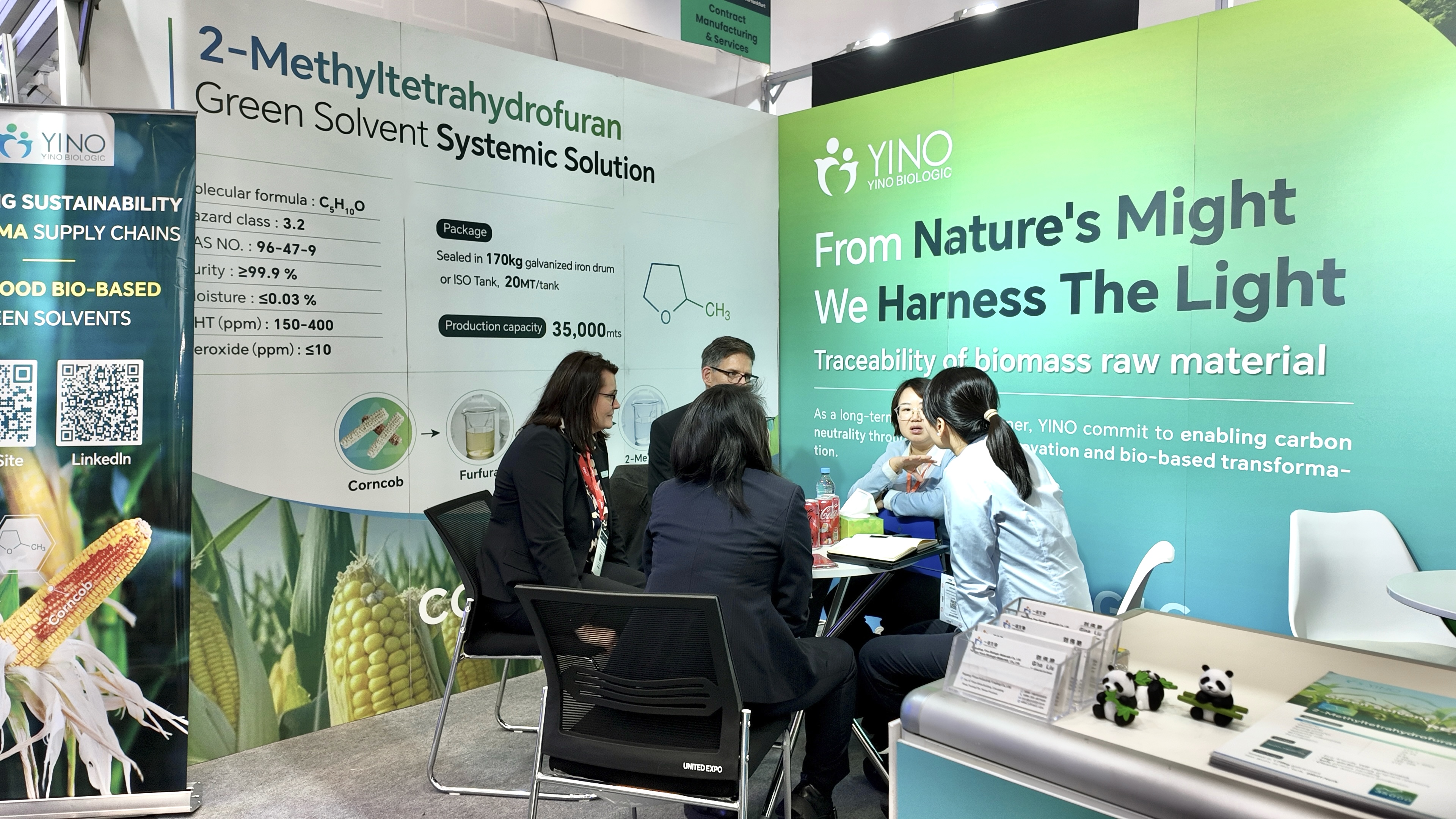 在制藥生產(chǎn)中,溶劑與原料的選擇不僅關(guān)系到工藝的安全性與環(huán)境友好性,更直接影響藥物純度和生產(chǎn)效率。YINO Biologic 以非糧生物質(zhì)玉米芯為原料,從源頭實現(xiàn)碳減排與資源高效利用,構(gòu)建了覆蓋從原料到終端制造的綠色供應(yīng)鏈。本次展會上,公司重點展示了多款高性能可持續(xù)產(chǎn)品,包括可作為活性藥物成分(API)合成綠色溶劑的 2-Methyltetrahydrofuran(2-MeTHF),該產(chǎn)品可有效替代傳統(tǒng) THF,顯著降低揮發(fā)性有機物排放并提升反應(yīng)安全性與效率;用于高端藥物保護基及精細(xì)化工中間體合成的關(guān)鍵原料 3,4-Dihydro-2H-Pyran(DHP);以及新一代高純度環(huán)狀酯原料 δ-Valerolactone(δ-VL),廣泛應(yīng)用于藥物輔料及聚合物開發(fā)領(lǐng)域,充分展現(xiàn)了 YINO 在綠色化學(xué)與可持續(xù)材料創(chuàng)新方面的實力。
